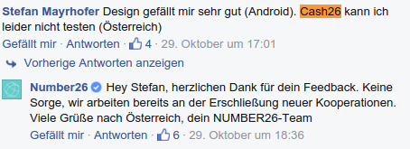 Ende Oktober informierte Number26, dass sie Cash26 auch in Österreich anbieten möchten und bereits Kooperationsgespräche führen